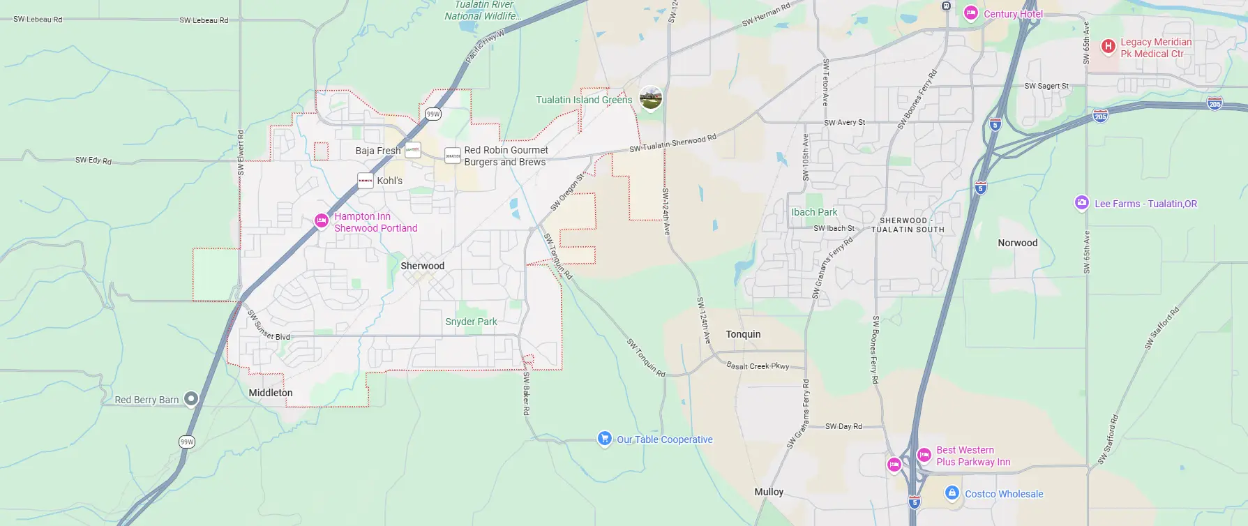 - ◆North Sherwood/Highway 99W Area – Mixed residential and commercial area encounters ants, rodents, and cockroaches from highway corridor businesses, older homes, and the transition toward Tigard.
