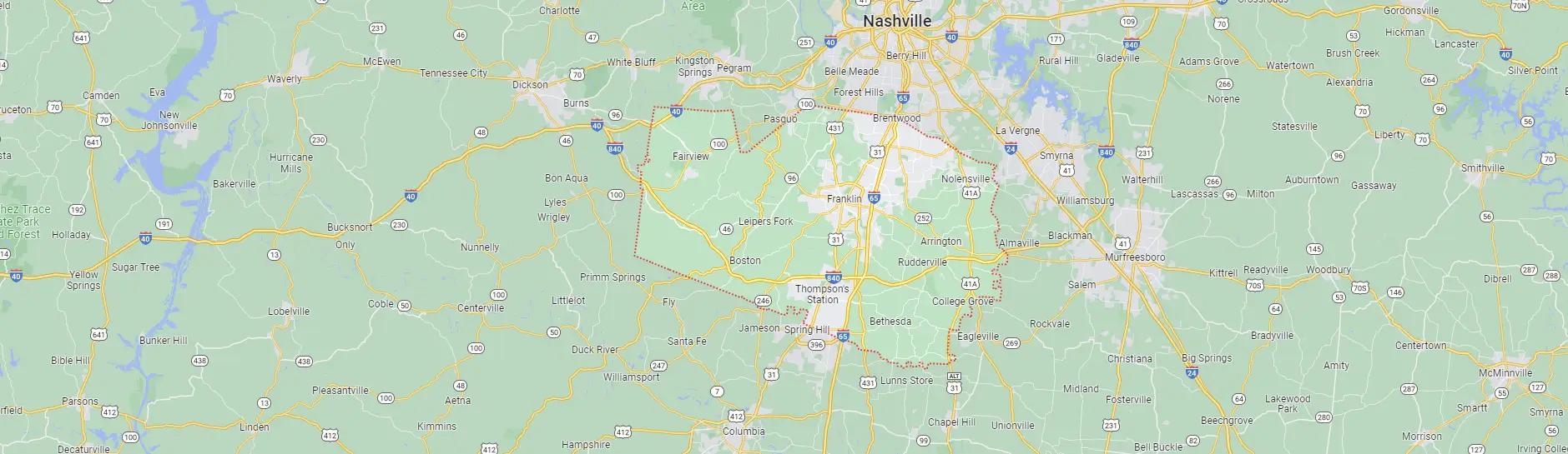 Locally staffed pest control across Williamson County. From Franklin and Brentwood to Nolensville, Thompson's Station, and College Grove — our technicians know this region and deliver results.